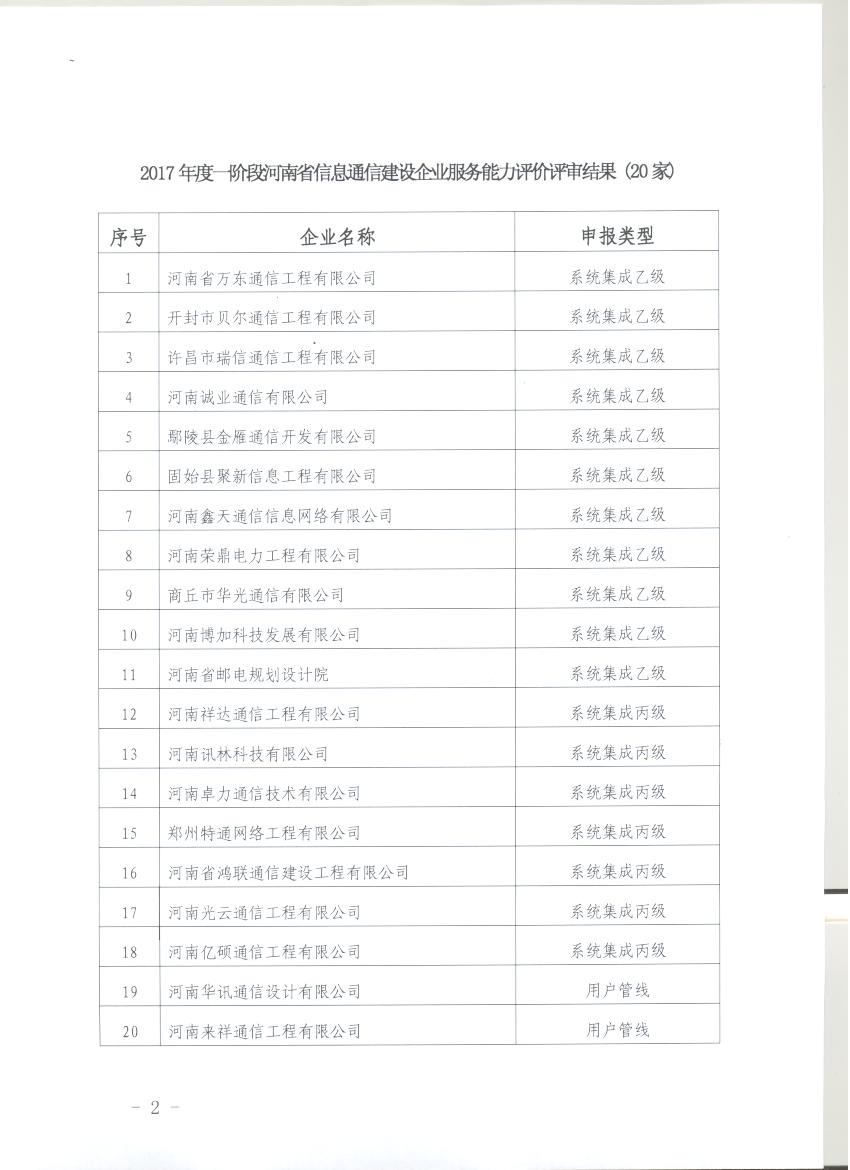 關(guān)于2017年度一階段河南省信息通信建設(shè)企業(yè)服務(wù)能力評(píng)價(jià)評(píng)審結(jié)果公示的通知