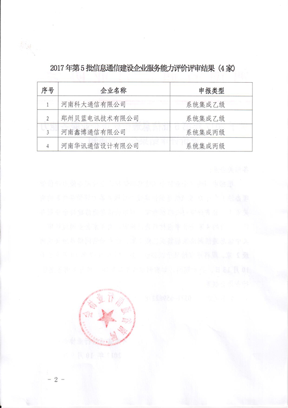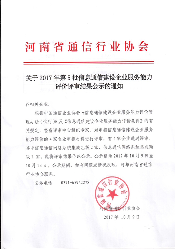 關(guān)于2017年第5批信息通信建設(shè)企業(yè)服務(wù)能力評(píng)價(jià)評(píng)審結(jié)果公示的通知