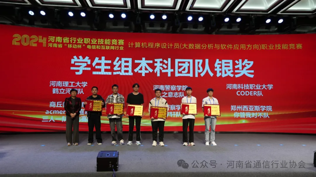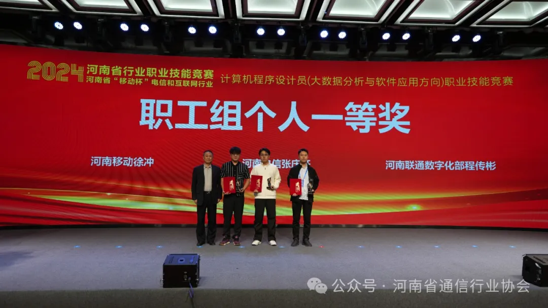 計算機程序設計員(大數據分析與軟件應用方向)競賽分為職工組個人技能挑戰(zhàn)賽、職工組團隊作品賽、 學生組團隊技能挑戰(zhàn)賽。每個獎項分別設有一等獎3名、二等獎5名、三等獎7名及優(yōu)勝獎10名。河南移動公司、河南電信公司、河南聯通公司數字化部等單位獲得職工組獎項,河南理工大學、新鄉(xiāng)醫(yī)院院三全學院、河南警察學院等單位獲得學生組獎項。