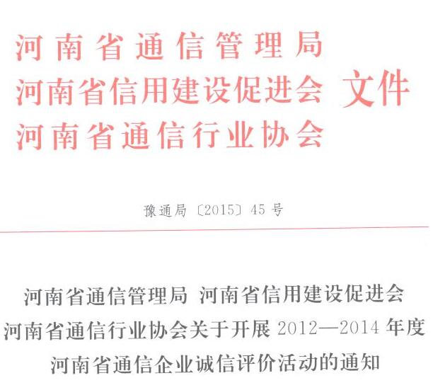 >> 河南省通信行業(yè)協(xié)會關于開展2012-2014年度河南省通信企業(yè)誠信評價活動的通知