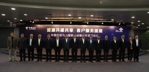 CNII網(wǎng)訊 2016年1月13日,中國(guó)電信集團(tuán)公司(“中國(guó)電信”)與中國(guó)聯(lián)合網(wǎng)絡(luò)通信集團(tuán)有限公司(“中國(guó)聯(lián)通”)在北京舉行“資源共建共享 客戶服務(wù)提質(zhì)”戰(zhàn)略合作協(xié)議簽約儀式。中國(guó)聯(lián)合網(wǎng)絡(luò)通信集團(tuán)有限公司黨組書(shū)記、董事長(zhǎng)王曉初、總經(jīng)理陸益民、副總經(jīng)理邵廣祿,中國(guó)電信集團(tuán)公司總經(jīng)理?xiàng)罱?、副總?jīng)理?xiàng)钚コ鱿⒐餐?jiàn)證簽約。中國(guó)電信高同慶副總經(jīng)理、中國(guó)聯(lián)通熊昱副總經(jīng)理分別代表雙方簽約。