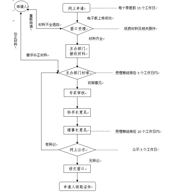受理方式為定期集中受理,受理期限分別為每季度第一個月的前15工作日(遇節(jié)假日除外),逾期不予受理。