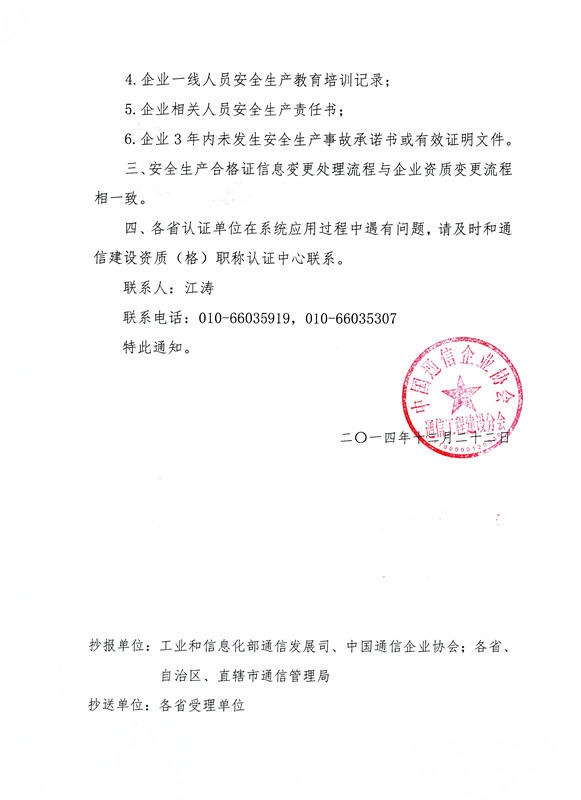 關(guān)于開始2015年通信建設(shè)工程企業(yè)安全生產(chǎn)合格證網(wǎng)上申報的通知