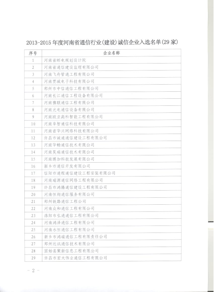 關于2013-2015年度河南省通信行業(yè)誠信評價活動評定結果的公示