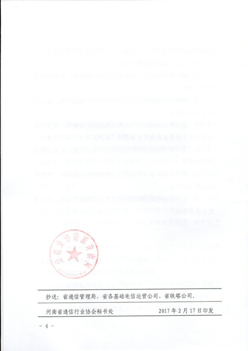 關(guān)于2017年度一階段河南省信息通信建設(shè)企業(yè)服務(wù)能力評價