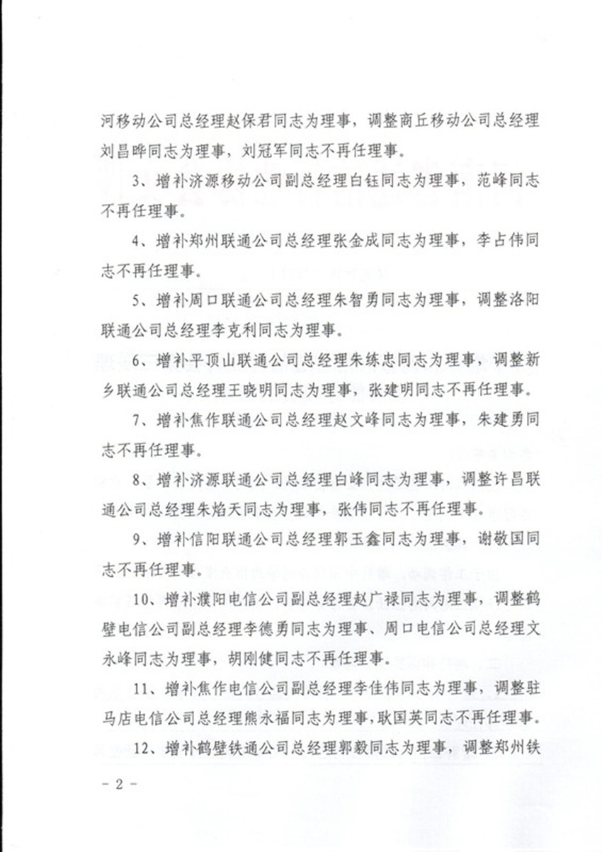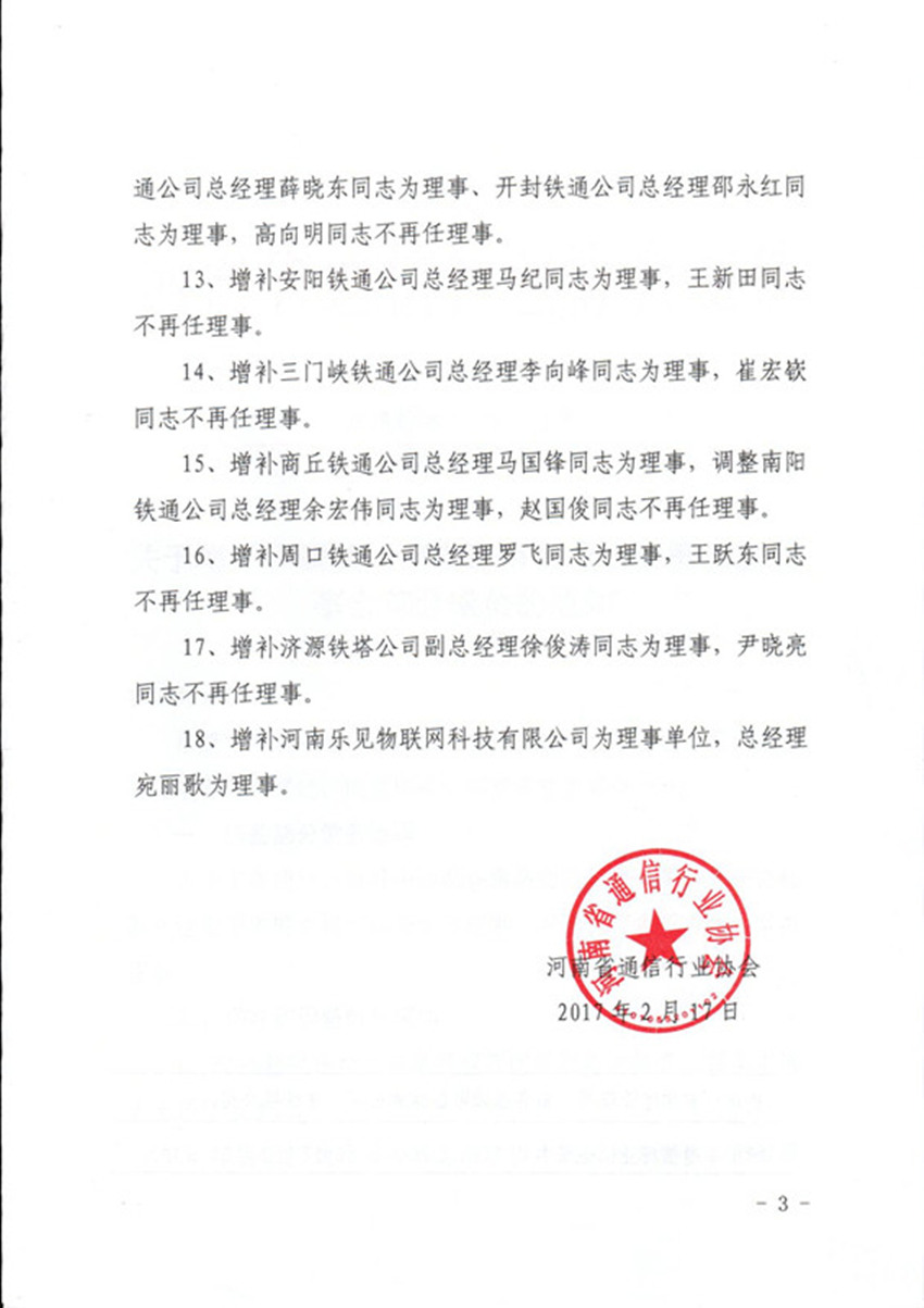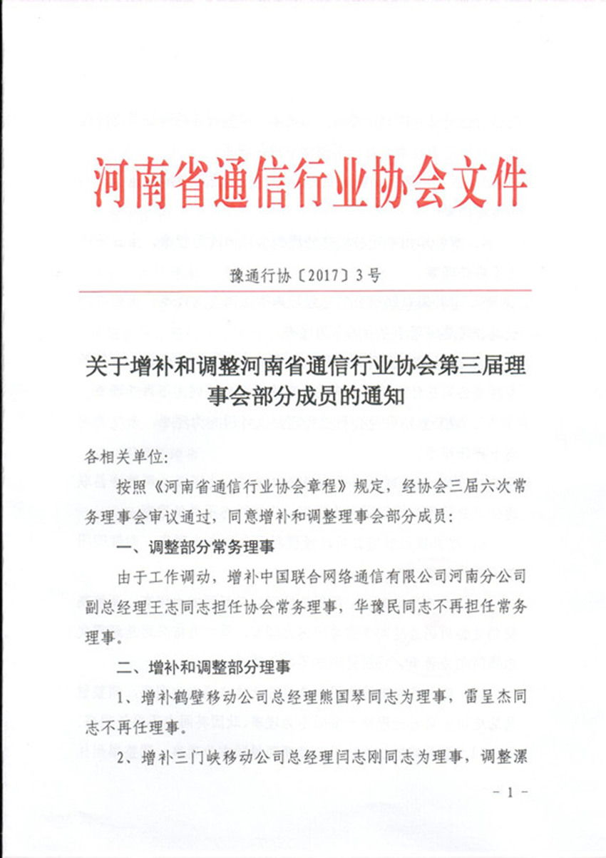 關(guān)于增補和調(diào)整河南省通信行業(yè)協(xié)會第三屆理事會部分成員的通知