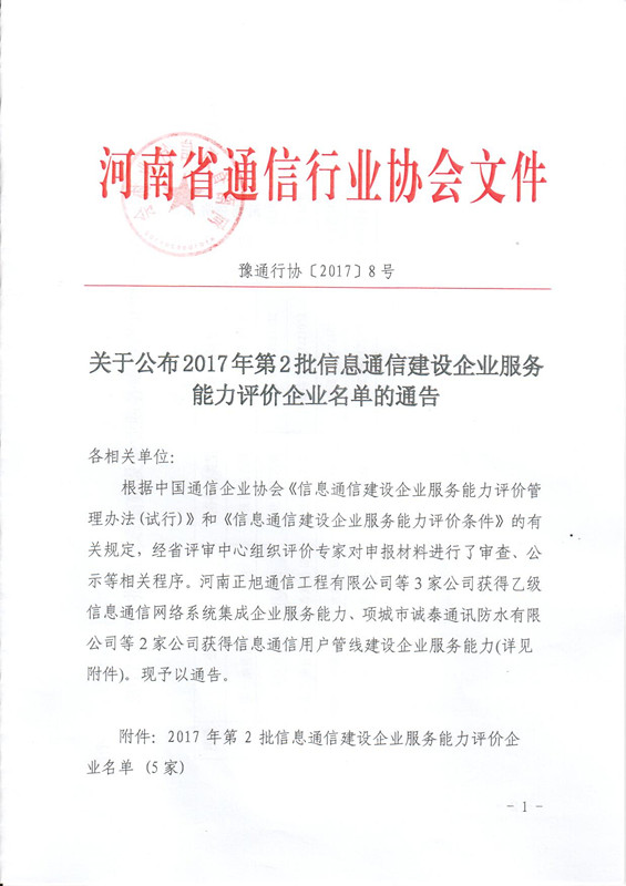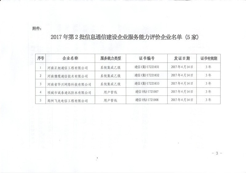關(guān)于公布2017年第2批信息通信建設(shè)企業(yè)服務(wù)能力評價企業(yè)名單的通告