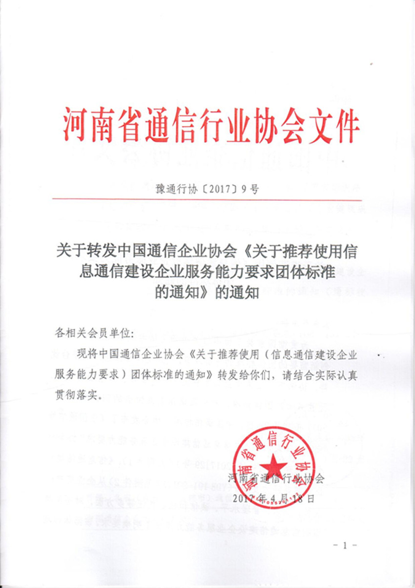 關于推薦使用《信息通信建設企業(yè)服務能力要求》團體標準的通知