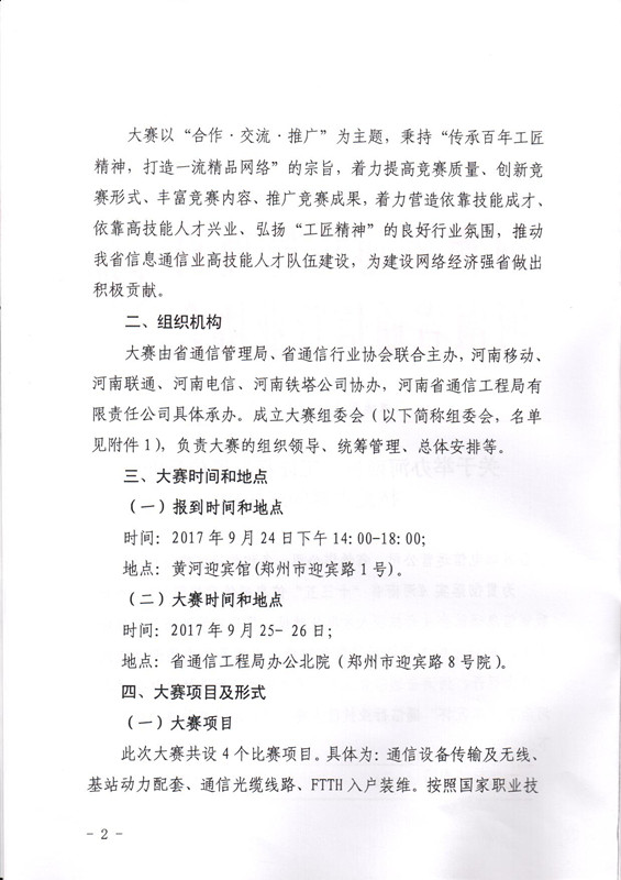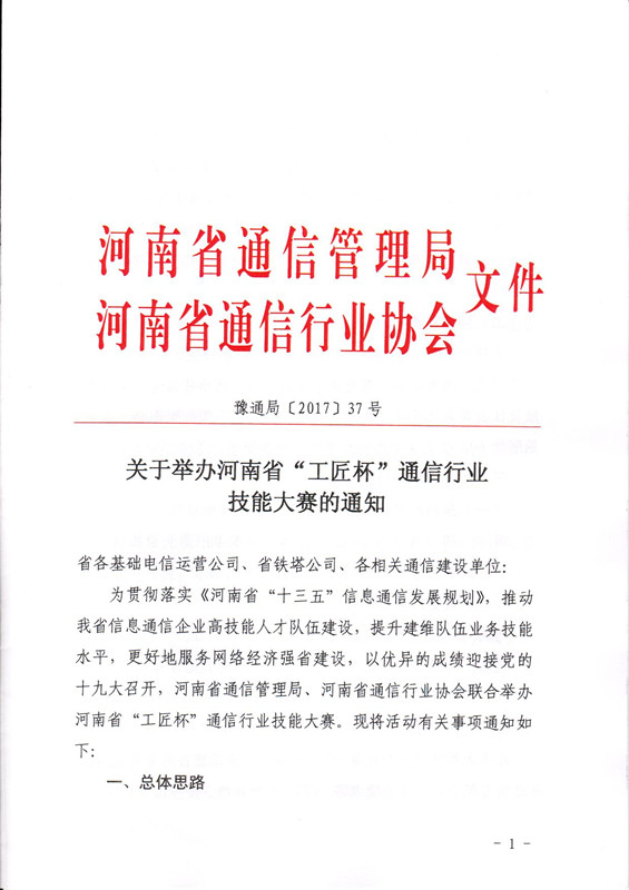 關于舉辦河南省“工匠杯”通信行業(yè)技能大賽的通知