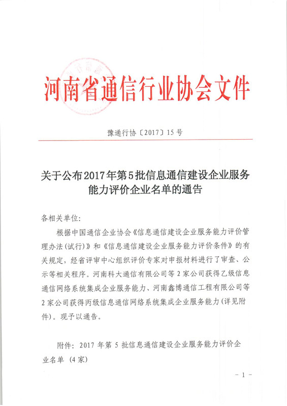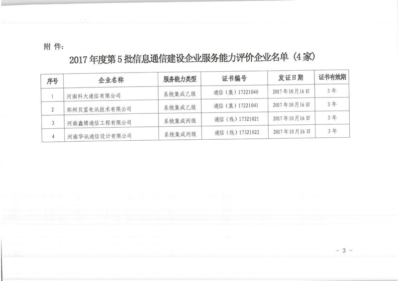 關(guān)于公布2017年第5批信息通信建設(shè)企業(yè)服務(wù)能力評(píng)價(jià)企業(yè)名單的通告