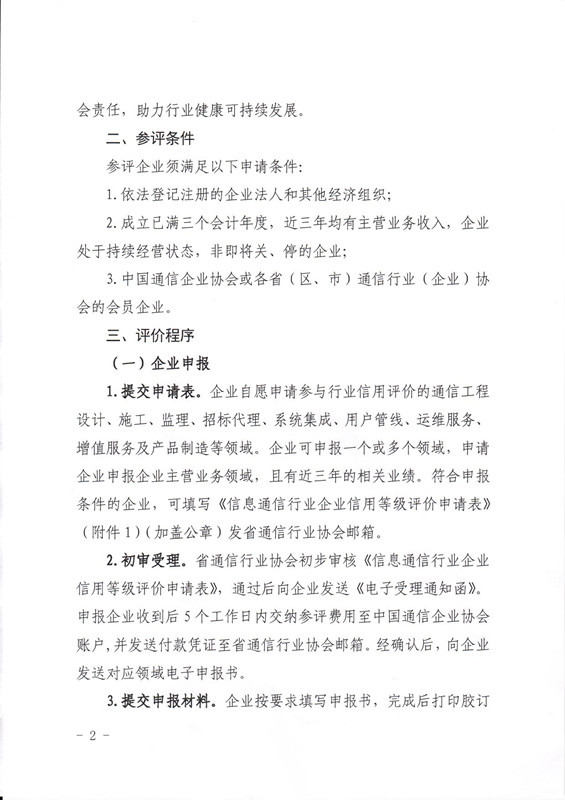 附件2:中國(guó)通信企業(yè)協(xié)會(huì)信息通信行業(yè)信用評(píng)價(jià)工作實(shí)施管理辦法