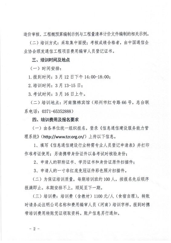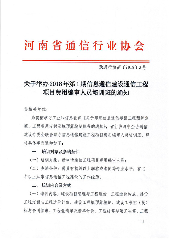關(guān)于舉辦2018年第1期信息通信建設(shè)通信工程項目費用編審人員培訓(xùn)班的通知