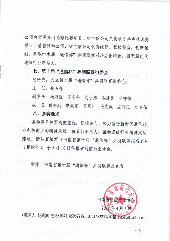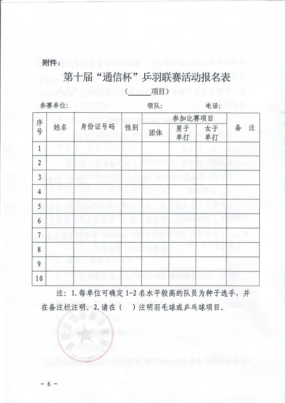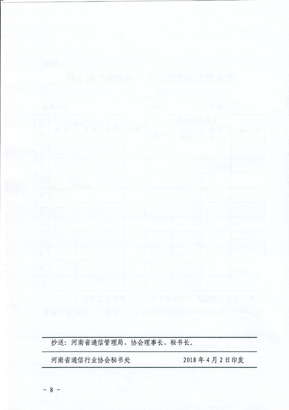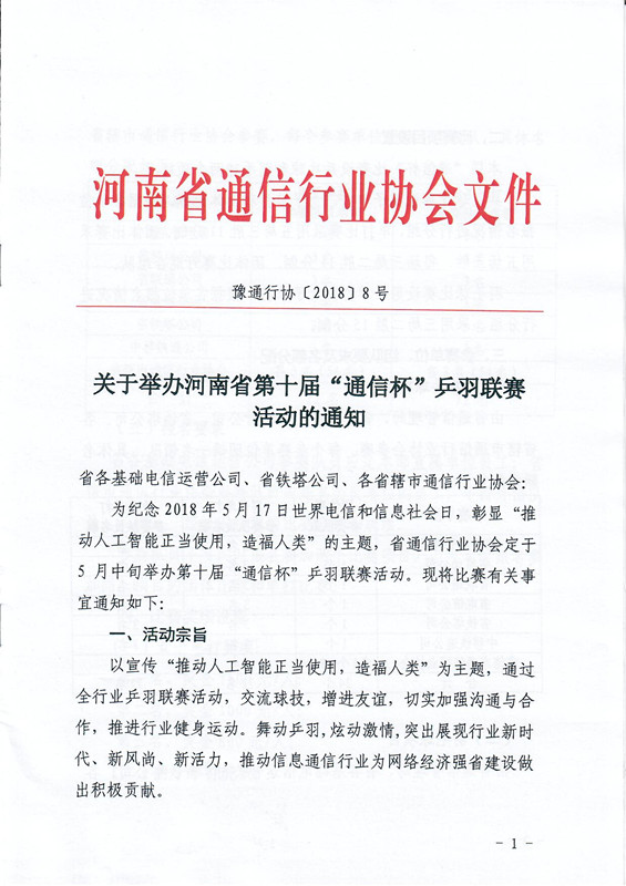 關(guān)于舉辦河南省第十屆“通信杯”乒羽聯(lián)賽活動(dòng)的通知