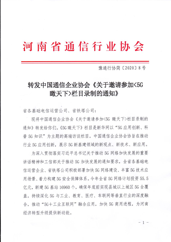 轉(zhuǎn)發(fā)中國通信企業(yè)協(xié)會《關(guān)于邀請參加<5G 瞰天下>欄目錄制的通知》