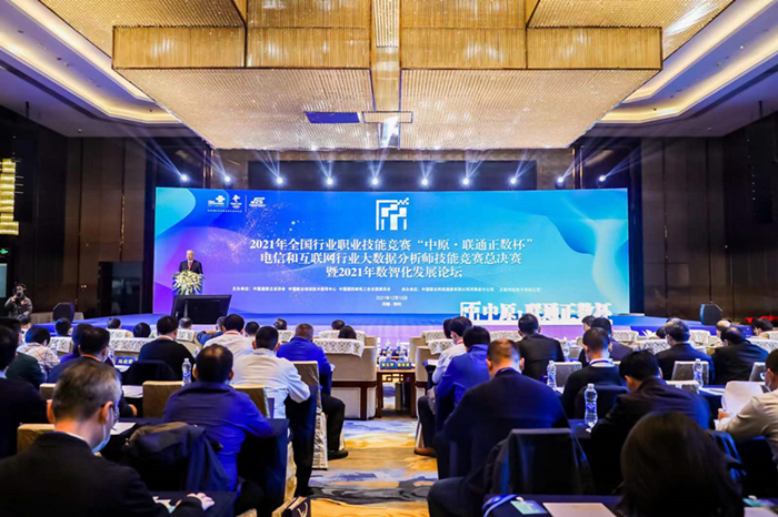 12月15日, 由中國通信企業(yè)協(xié)會、中國就業(yè)培訓(xùn)技術(shù)指導(dǎo)中心與中國國防郵電工會全國委員會聯(lián)合主辦, 河南省通信管理局、河南省大數(shù)據(jù)管理局、河南省通信行業(yè)協(xié)會聯(lián)合指導(dǎo),中國聯(lián)合網(wǎng)絡(luò)通信有限公司河南省分公司、正數(shù)網(wǎng)絡(luò)技術(shù)有限公司承辦的2021年全國行業(yè)職業(yè)技能競賽—第二屆全國電信和互聯(lián)網(wǎng)行業(yè)職業(yè)技能競賽(大數(shù)據(jù)分析師賽項,職工組)總決賽在鄭州成功舉辦。本競賽是經(jīng)由人力資源和社會保障部批準(zhǔn)的國家級二類技能競賽,也是人社部國家級賽項中唯一一個與大數(shù)據(jù)分析相關(guān)的賽項,同時也是我們河南省第一次承接國家級職工類的大數(shù)據(jù)賽項。全國政協(xié)經(jīng)濟委員會副主任、工信部原副部長劉利華、河南省政協(xié)副主席龔立群、國際歐亞科學(xué)院院士、科技部原黨組成員張景安、中國通信企業(yè)協(xié)會會長苗建華、河南省通信管理局局長陸建文、副局長方強、河南省大數(shù)據(jù)管理局副局長朱明,中國通信企業(yè)協(xié)會副秘書長趙俊湦,以及中國移動、中國聯(lián)通、中國電信、中國鐵塔、河南省通信行業(yè)協(xié)會等相關(guān)領(lǐng)導(dǎo)出席了本次總決賽,中國通信企業(yè)協(xié)會副會長兼秘書長趙中新主持會議。