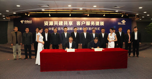 CNII網(wǎng)訊 2016年1月13日,中國(guó)電信集團(tuán)公司(“中國(guó)電信”)與中國(guó)聯(lián)合網(wǎng)絡(luò)通信集團(tuán)有限公司(“中國(guó)聯(lián)通”)在北京舉行“資源共建共享 客戶服務(wù)提質(zhì)”戰(zhàn)略合作協(xié)議簽約儀式。中國(guó)聯(lián)合網(wǎng)絡(luò)通信集團(tuán)有限公司黨組書(shū)記、董事長(zhǎng)王曉初、總經(jīng)理陸益民、副總經(jīng)理邵廣祿,中國(guó)電信集團(tuán)公司總經(jīng)理?xiàng)罱?、副總?jīng)理?xiàng)钚コ鱿⒐餐?jiàn)證簽約。中國(guó)電信高同慶副總經(jīng)理、中國(guó)聯(lián)通熊昱副總經(jīng)理分別代表雙方簽約。